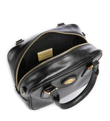 Borsa donna nera realizzata in pelle. Modello a bauletto squadrato dal design elegante, chiuso con zip e tracolla removibile.