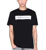 T-shirt uomo nera in cotone leggero, dalla texture liscia e dalla vestibilità fluida. Presenta il logo a contrasto all'interno di un riquadro che aggiunge un dettaglio distintivo.