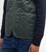 Gilet uomo oliva classico, realizzato nel nylon trapuntato a rombi, elemento distintivo di Barbour. Questo versatile gilet può essere abbinato tramite cerniera alle giacche Barbour interattive o indossato semplicemente da solo. Presenta un'autentica fodera in tartan e ampie tasche applicate e logo ricamato tono su tono sulla tasca inferiore sinistra.