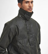 Giubbino uomo oliva realizzato in cotone cerato di peso medio (170 grammi), estremamente funzionale e dotato di fodera e cappuccio termici opzionali con cerniera.