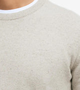 Maglia uomo avorio in 100% lana per una sensazione di morbidezza e calore. Il classico capo a girocollo è caratterizzato da dettagli screziati all-over che conferiscono al capo un look elegante, mentre le maniche lunghe rendono questo strato ancora più accogliente. Logo ricamato sul petto.