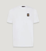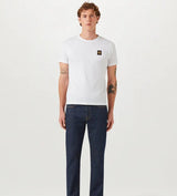 T-shirt uomo bianca in cotone ultraleggero e morbido. T-shirt girocollo a maniche corte, patch della fenice con bordo ricamato sul petto, dalla vestibilità regolare.