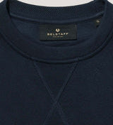 Felpa blu uomo in cotone, realizzata in morbido jersey di cotone, girocollo e maniche lunghe, con dettaglio cucitura a V sul colletto; polsini, bordo e colletto a coste.