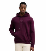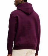 Felap uomo viola realizzata in misto cotone. Modello con cappuccio con coulisse e tasca frontale a marsupio, vestibilità rilassata con spalle scese.