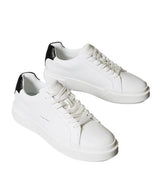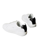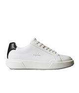 Sneakers uomo bianche con retro a contrasto nero, in pelle liscia con soletta in schiuma e fodera a rete in poliestere; suola in tpr flessibile e resistente, robusta ma leggera. Portano logo stampato sulla linguetta e sul tacco e monogramma sul lato.