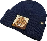 Cappello unisex navy, modello cuffia, realizzato in misto lana con patch sul davanti.