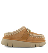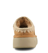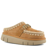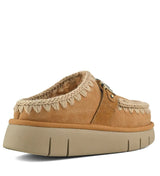Scarpe donna color savana in pelle scamosciata, realizzate artigianalmente in vera pelle di pecora double-face, presenta le cuciture in lana cucite a mano tipiche del marchio, un logo metallico, una morbida soletta in pelle di pecora e una suola in EVA flessibile e leggera.