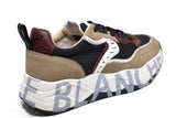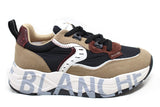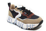 Sneakers donna marrone chiaro e nero in suede e nylon