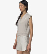 T-shirt donna beige dal gusto athleisure e dalla vestibilità rilassata, è realizzata in morbido interlock tecnico elasticizzato con un’alta percentuale di cotone che segue delicatamente i movimenti. Il capo si caratterizza per lo scollo a V e le maniche cortissime ad aletta, logo in silicone. Vestibilità regolare.