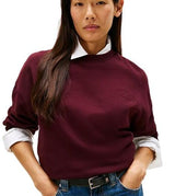 Felpa donna bordeaux realizzata in morbida spugna di cotone, dallo stile sporty-chic con taglio comodo e logo ricamato sul petto. Vestibilità rilassata.