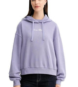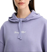 Felpa donna  in tessuto flex di misto cotone, dalla vestibilità rilasstata, con cappuccio e impreziosita da un sofisticato logo in corsivo con effetto 3D, bandierina ricamata sulla manica
