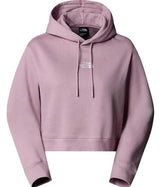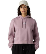 Felpa donna rosa in misto cotone, modello crop, cappuccio a due pannelli con coulisse regolabile, polsini e orlo a coste con loghi ricamati.