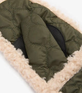 Guanti donna verde in poliestere. Dalla struttura impermeabile alle clip di collegamento sui polsini e alle impugnature aggiuntive sui palmi, ogni dettaglio di questi guanti è stato pensato per offrire un paio pratico ma elegante per il guardaroba invernale. Rifiniti con finiture in pelliccia sintetica e trapuntatura a cipolla all-over. Etichetta laterale con logo.