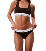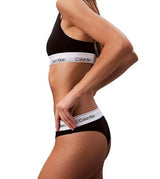 Slip brasiliano donna nero in misto cotone modal, con cintura senza cuciture con logo.