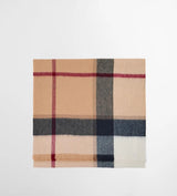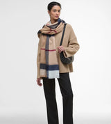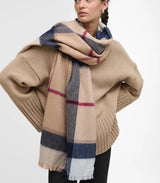 Sciarpa donna tartan beige realizzata in pregiata lana d'agnello,presenta un design oversize con motivo scozzese e una finitura a nappe. Perfetta per aggiungere un tocco sofisticato a qualsiasi outfit, questa sciarpa è rifinita con un'etichetta Barbour intessuta sulla parte posteriore.