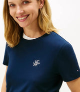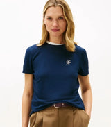 T-shirt donna navy realizzata in jersey di cotone elasticizzato con logo ricamato sul petto, vestibilità regolare.