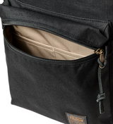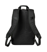 Zaino uomo nero realizzato in leggero nylon cordura cerato, materiale leggero e altamente resistente all'abrasione, con pannello posteriore imbottito e spallacci sagomati, cinghia sulle spalline per l'attacco dell'ingranaggio. Tasca per laptop e tasca esterna con cerniera.