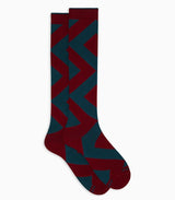 Calze lunghe da uomo realizzate in cotone di alta qualità, caratterizzate da una sofisticata fantasia a maxi rombo nei toni del bordeaux. Ideali per aggiungere un tocco di eleganza geometrica a ogni outfit.
