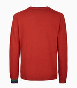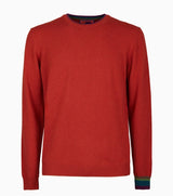 Pullover uomo arancio, morbido e avvolgente, realizzato in Italia in pregiata lana misto viscosa e cashmere. I toni dell' arancio tinta unita si abbinano perfettamente ad ogni tipo di look sia casual che formale. Caratterizzato dal polsino della manica sinistra a righe multicolor.