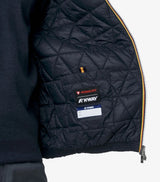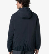 Giubbino corto uomo realizzato in tessuto misto nylon morbido, idrorepellente e antivento, con imbottitura ecologica, trapuntatura ondulata interna, grado di calore medio. Modello con cappuccio rifinito con elastico esterno, chiusura zip e due tasche con bottoni a pressione, vestibilità slim.