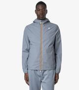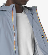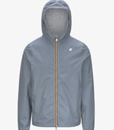 Giubbino uomo grigio celeste, con vestibilità slim, realizzato in nylon stretch con fodera in morbido jersey di cotone grigio melange solo su fronte e retro che garantisce massimo comfort, protezione e una sensazione piacevole a contatto con la pelle. Giubbino impermealbile, antivento e traspirante.  L’interno è rifinito con la massima cura dei dettagli: le cuciture sono termonastrate e al punto vita è presente l’iconico tape multicolor K-Way. Caratterizzato da cappuccio regolabile, chiusura con zip, polsi e bordo fondo con elastico, quest'ultimo regolabile e da due tasche latertali con zip. Logo in silicone bianco sul petto. Disponibile nelle taglie dalla S alla XL.