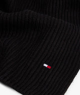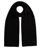 Sciarpa uomo nera in morbida maglia di cotone prima e cashmere, texture a coste con logo ricamato sull'estremità.