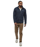 Giubbino uomo navy realizzato in pile di maglia di poliestere riciclato al 100%, caldo, morbido e durevole, tinto con un processo a basso impatto che riduce l'uso di coloranti, energia e acqua rispetto ai metodi di tintura mélange convenzionali. Presenta zip completa con collo alto, maniche raglan che offrono mobilità e comfort, due tasche scaldamani con cerniera e una tasca di sicurezza con cerniera verticale sul petto a sinistra. La costruzione a cucitura piatta riduce l'ingombro e aiuta a eliminare gli sfregamenti delle cuciture