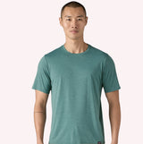 T-shirt uomo verde realizzata in poliestere riciclato al 50-100%, il modello Capilene® Cool Daily offre il massimo comfort in allenamenti intensi in condizioni che vanno dal fresco al caldo, è pensata per l'uso sui sentieri o in acqua: si asciuga rapidamente, è elasticizzata per garantire libertà di movimento e comfort, e ha la tecnologia HeiQ® Mint per il controllo degli odori. Vestibilità regolare. Disponibile dalla taglia S alla XXL.