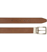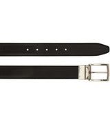 Cintura uomo reversibile nero/marrone, realizzata in pelle, con fibbia adf ardiglione color rutenio. Facilmente accorciabile lato fibbia.