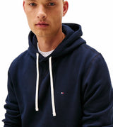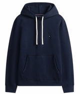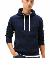 Felpa uomo blu navy in misto cotone felpato, offre il massimo del comfort, in quanto completata dall'ampia tasca a marsupio e dal pratico cappuccio con lacci. Logo ricamato sul petto. Vestibilità regolare