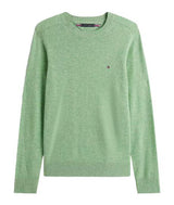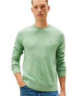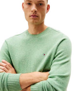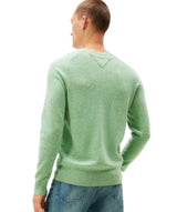 Maglia uomo verde salvia realizzata in pura lana, modello girocollo, con collo, polsini e orlo a coste, bandierina ricamata sul petto. Vestibilità regolare.