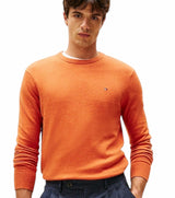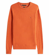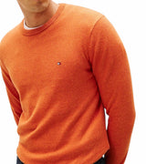 Pullover uomo arancione a maniche lunghe, realizzato in lussuoso tessuto misto di cotone pima e cashmere, girocollo, collo, polsini e fondo a coste, nastro iconico all'interno del collo e bandierina Tommy Hilfiger ricamata sul petto. Vestibilità regolare.