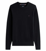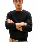 Pullover uomo nero a maniche lunghe, realizzato in lussuoso tessuto misto di cotone pima e cashmere, girocollo, collo, polsini e fondo a coste, nastro iconico all'interno del collo e bandierina Tommy Hilfiger ricamata sul petto. Vestibilità regolare.