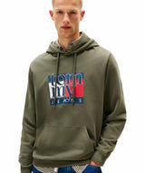 Felpa uomo verde realizzata in morbidissima spugna di puro cotone manopesca e rifinita dall'iconico logo d'impatto, per un tocco distintivo. Caratterizzata da collo con cappuccio e lacci, tasca a marsupio, fondo e polsini a coste e grafica con logo sul davanti.