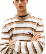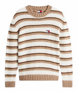 Caratterizzato da righe orizzontali su tutta la superficie, girocollo. collo, polsini e orlo a coste, stemma di Tommy sul petto. Vestibilità regolare