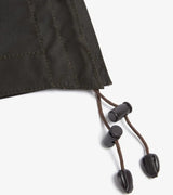 Cappuccio verde oliva oversize realizzato in tradizionale cotone cerato, consente di indossare un cappello sotto ed è dotato di un filo sulla falda per la massima visibilità. Compatibile con tutte le giacche Barbour pre-borchiate.