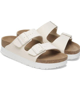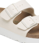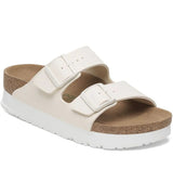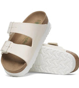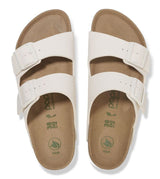 Ciabatta donna bianca con tomaia in Birko-Flor®, un materiale sintetico resistente all’usura e delicato per la pelle. Modello con due cinturini e una zeppa alla moda, dettagli in colore coordinato che completano l’aspetto raffinato del sandalo. Il materiale di questi sandali è stato rinnovato ed è ora disponibile in versione vegan. Il modello viene inoltre sottoposto a controlli effettuati da laboratori indipendenti per garantire che non vi siano parti di origine animale.