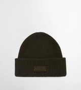Cappello uomo verdone realizzato in misto cotone a partire da un filato morbidissimo. Questo copricapo raffinato presenta un orlo risvoltato con badge gommato con logo Barbour International e una costruzione a doppio strato.