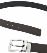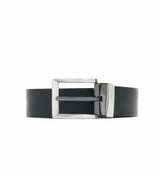Cintura uomo nera realizzata in vera pelle con logo su tutta la lunghezza in colore tono su tono. Ardiglione in metallo.