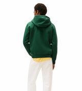 Felpa uomo verde in tessuto flex di misto cotone, con pratica tasca a marsupio, collo con cappuccio e lacci è perfetta per i momenti di relax. Vestibilità regolare.