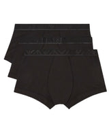 Set di tre boxer da uomo neri, realizzati in morbido jersey di cotone elasticizzato per un comfort ideale durante tutta la giornata. La fascia elastica in vita presenta tre varianti di logo per uno stile distintivo anche nella biancheria intima. Vestibilità aderente e anatomica, pensata per garantire sostegno e libertà di movimento. Perfetti per l’uso quotidiano. Disponibili nelle taglie dalla M alla XXL.