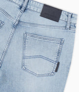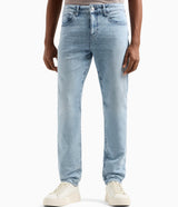 Jeans uomo lavaggio chiaro a gamba dritta, chiusura con zip e bottone, tasche anteriori classiche, orlo dritto. Vestibilità regolare.