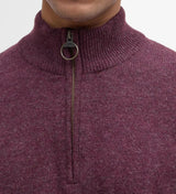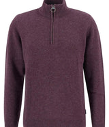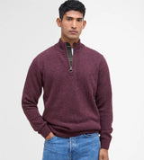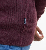 Maglione da uomo bordeaux elegante e versatile, realizzato in pregiata lana d'agnello. Questo caldo maglione è un capo ideale per la stagione invernale. Presenta giromanica completamente modellato e un comodo collo a imbuto a coste, che si chiude con una zip con marchio Barbour. I pannelli laterali a coste e le toppe sui gomiti a contrasto aggiungono dettagli discreti ma accattivanti.