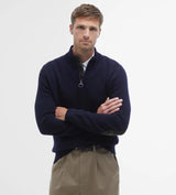 Maglione uomo navy elegante e versatile, realizzato in lussuosa lana d'agnello. Questo caldo maglione è un capo ideale per l'inverno, è caratterizzato da un giromanica sagomato e da un accogliente collo leggermente alto a coste, che si chiude con una cerniera firmata Barbour. I pannelli laterali a coste e le toppe a contrasto sui gomiti nel caratteristico Classic Tartan di Barbour aggiungono raffinati dettagli di stile.