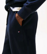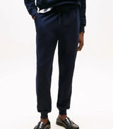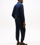 Joggers uomo blu realizzati in spugna di puro cotone, modello con coulisse in vita, tasche laterali a bustina e tasca a filetto sul retro con logo ricamato sulla tasca. Vestibilità regolare.