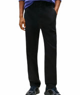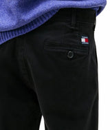 Pantaloni chino uomo neri realizzati in twill di cotone elasticizzato dalla vestibilità regolare, il che li rende un capo versatile e indispensabile per il guardaroba. Chiusura con cerniera e bottone, due tasche a bustina angolate in vita, due tasche posteriori a filetto con bottone e distintivo di Tommy sul retro.