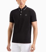 Polo uomo nero a maniche corte in piquet di cotone, capo essenziale per ogni guardaroba. Realizzata in cotone traspirante, offre una vestibilità comoda e fresca, perfetta per le giornate calde. Il design semplice e classico è arricchito da un logo ricamato sul petto, che aggiunge un tocco discreto e raffinato.