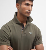 Polo uomo verde oliva scuro in cotone è caratterizzato da maniche corte, finiture tartan sul retro del collo e logo sul petto per un tocco di classe. Disponibile dalla taglia M alla XXL