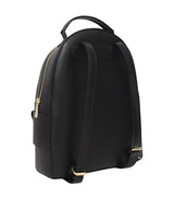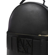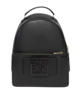 Zaino donna nero realizzato in ecopelle, dotato di spallacci regolabili, ampio scomparto chiuso da zip e tasca ampia sul davanti, sempre chiusa da zip, sulla quale è applicata placca con logo tono su tono.