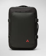 Zaino nero realizzato in poliestere dal design minimal con apertura centrale e tasca fontale con zip verticale e fibbie laterali. Ha una capienza di 20L e dispone di fibbie che ne regolano il volume. Manico e spallacci sono regolabili con cinghie sul petto confortevoli e sicure. Questo zaino è ideale per una varietà di occasioni, offrendo praticità e stile sia per viaggi che per impegni di lavoro.